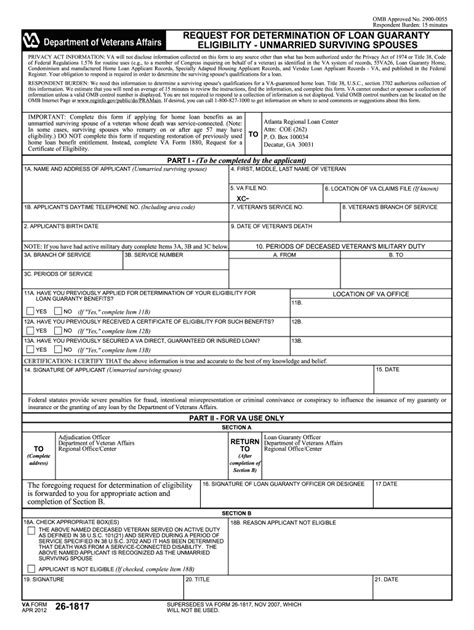 26 1817 Va Form. Applicant is not eligible (if. Web you’ll need to fill out a request for determination of loan guaranty eligibility—unmarried surviving spouses.