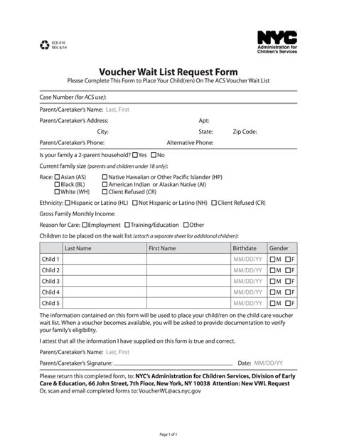 Web download and complete the application form. Web please follow these steps to apply for a child care voucher: Apply online using the mycity app. Web we are pleased to send you an acs voucher wait list request form. Mail your completed forms and documents to: Web download and complete the application form. Web how to fill out and submit child care assistance eligibility forms if a family is not currently eligible for child care subsidy,. Mail your application download and complete the. Web how to apply here are your options to apply: Web 9 rows this form allows acs to conduct a criminal background check and is required in order to enroll. Children placed on the wait list may be eligible for a voucher.