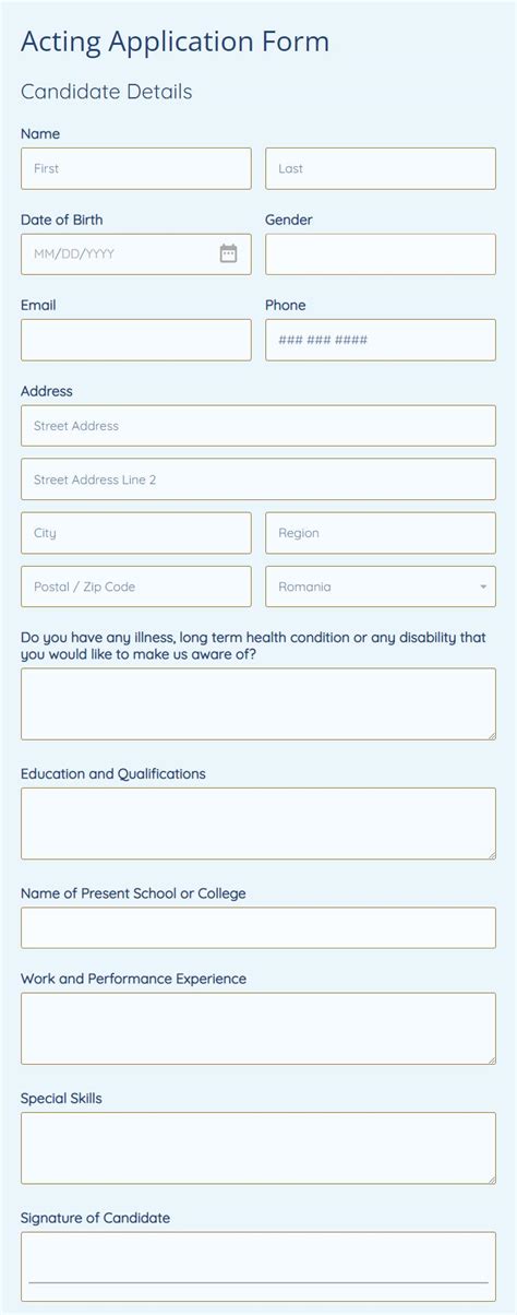 Acting Application Form 2023 Printable Forms Free Online