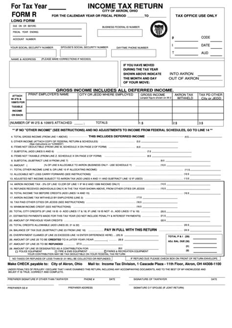 Form Ir Akron Tax Return For Individuals Instructions Exemption