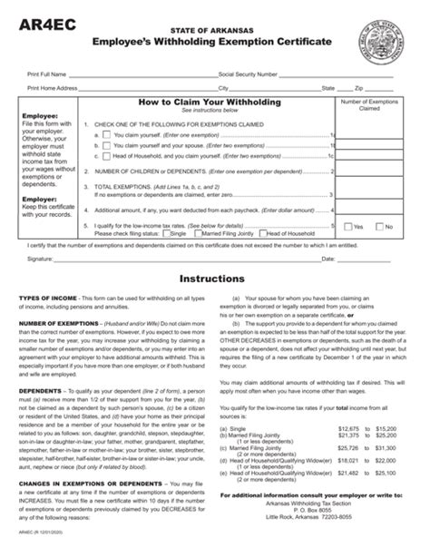 Arizona residents who qualify, complete this form to request to have no. Web file this form with your employer. Arizona residents who qualify, complete this form to request to have no. Web what is form ar4ec? Web instructions for the texarkana exemption certificate any employee who qualifies for exception 1 or 2 on the face of. Web employees earning less than the lower threshold for their filing status can claim exemption from withholding using. Otherwise, your employer must withhold state income tax from your wages without exemptions. Web form ar4ec was revised november 18, 2022 for 2023. Web 9 rows withholding exemption certificate.