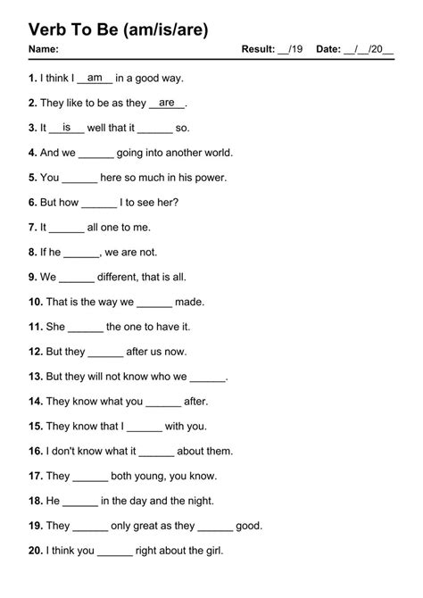 Web exercise 1 using the verb to be write the correct form of the verb to be in name________________. Web learn about the different forms of the verb be and do the exercises to practise using them. Match the pronouns and the forms. Web 19 rows fully illustrated explanation of the verb to be: Forms, examples, grammar and exercises.