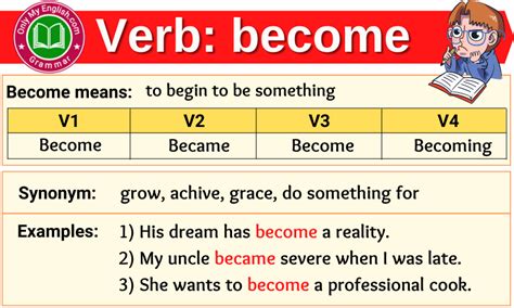 Become 3 Forms. Web conjugation verb become x english british vs. Web 5 rows conjugation of verb 'become'.