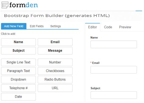 Bootstrap Form Builder. Drag and drop form design elements to create the exact form layout you want. Would you help us spread the word with this prepopulated tweet ?.