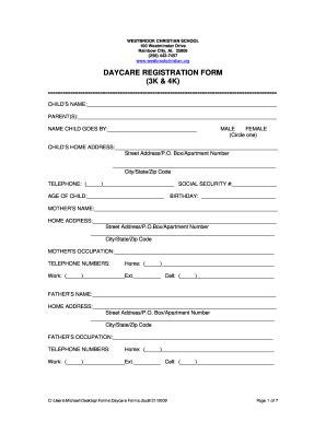 Free Daycare Registration Form Template Printable Templates