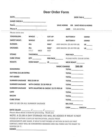 Deer Processing Order Forms. Web deer left for processing at any commercial processing plant shall be claimed by the owner by may 1 following the season. Web below is our processing price list (subject to change without notice) basic deer processing: