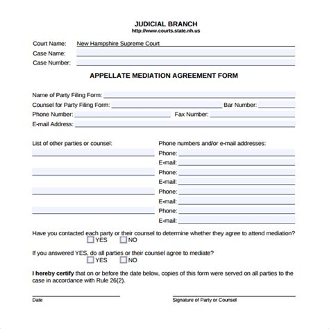 Free Printable Mediation Agreement Form (GENERIC)