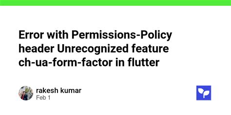 Error With Permissions-Policy Header: Unrecognized Feature: 'Ch-Ua-Form-Factor'.. Web unless blocked by a user agent permission policy, it is sent by default, without the server opting in by sending. This can happen when the.