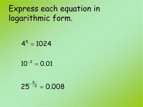 Express Equation In Logarithmic Form. 27 = x3 27 = x 3 convert the exponential equation to a logarithmic. Web a scientific calculator generally always has an ln (natural logarithm, or log base e) key.