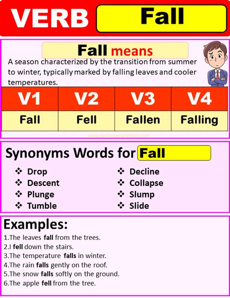 Fallen Verb Forms. Fell irregular forms auxilliary verb spelling. Fall oneself / not fall.
