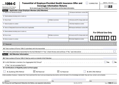 IRS Form 1094C for 2022 Form 1094C Electronic Filing