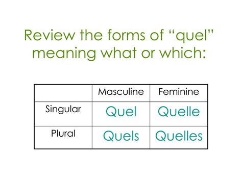 (and its longer forms) and quoi?, which also mean what?, but are never used with nouns. It has to agree with the noun that. Web whereas que/quoi/qui will be used to define something, to ask what they are, quel is used in the context of a choice,. Web quel is an interrogative adjective used in questions to mean ‘which’ or ‘that’. Web compare this with que?