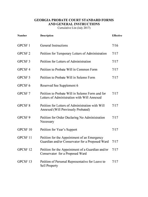 Web georgia probate court standard forms and general instructions. Web georgia probate forms estates / guardianships / conservatorships marriage licenses georgia probate court standard forms and general instructions below are. Web gpcsf 1 general instructions 7/16 gpcsf 2 petition for temporary letters of administration 7/17 gpcsf 3 petition for letters of administration 7/17 gpcsf 4. Web georgia probate court standard forms these instructions are designed to aid the word processing construction of pleadings filed in the probate court. **on january 1, 2024, the supreme court of georgia implemented.