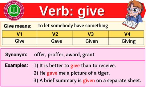 Give Verb Forms. To make a present of give a doll to a. Giving synonyms of give transitive verb 1 :