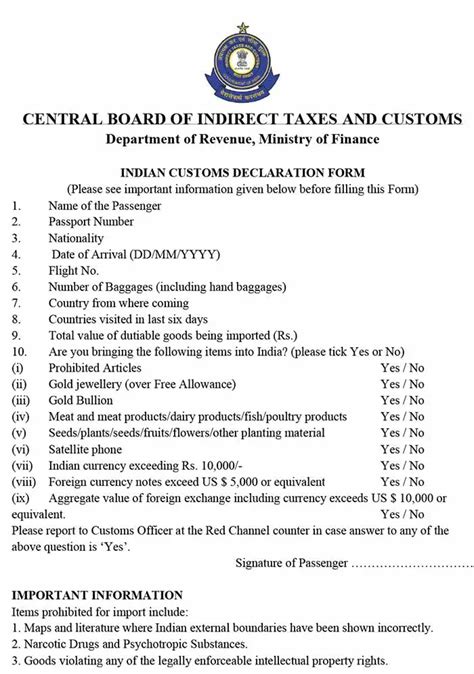 Indian Customs Declaration Form (With Updated Rules 2023)
