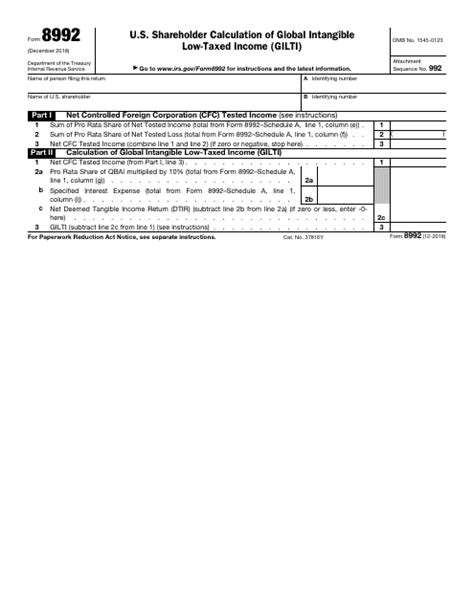 Web form 8992 instructions released january 7 to reflect a u.s. Who must file any u.s. Web form 8992 is used to compute a u.s. Shareholder of one or more cfcs. Shareholders of controlled foreign corporations use form 8992 and schedule a to figure their global intangible. Web irs has issued a new form, form 8992, for doing the calculations with respect to code sec. Web form 8992 for gilti form 8992 & schedule a for gilti taking a romp through form 8992 for gilti calculations: