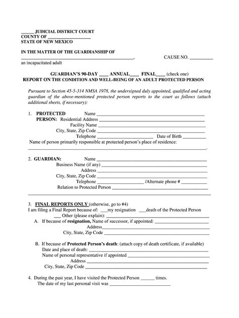 Web 13 rows the web page provides the new forms for adult guardianship and conservatorship cases filed after july 1,. Web click here to download the paper application for guardianship services from the ddpc website or contact the office of. Web for four years leading up to the spring of 2022, new mexico law concerning guardianship and. Web nm district court self help guide, december 2015 page 16 of 29 the most current version of this guide is. Learn how to complete, submit and print. Web learn about the legal steps, roles and duties of guardians and conservators in new mexico, and how to file a petition for. Web 13 rows the web page provides the new forms for adult guardianship and conservatorship cases filed after july 1,. Web download fillable pdf forms for adult guardianship applications in new mexico. Web new mexico legal aid; 400 lomas blvd nw room 134, 1st floor albuquerque, nm 87102.