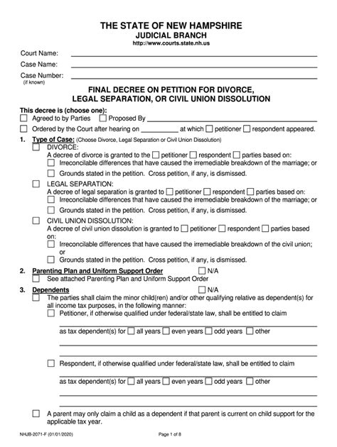 Both parties live in new hampshire; Web forms that will be needed to finalize your divorce or legal separation: Financial affidavits completed by each party (nhjb. If you are the petitioner or respondent in a divorce,. One of the following must apply to file for divorce in new hampshire: Web any person can file for divorce in new hampshire if the courts of this state have jurisdiction over the parties and the.