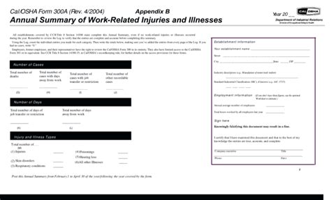 Osha Form 300a Printable