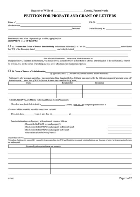 Petition For Probate And Grant Of Letters Pennsylvania printable pdf