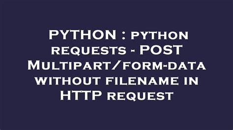 Requests Post Multipart/Form-Data. Web multipart requests combine one or more sets of data into a single body, separated by boundaries.