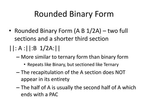 In a rounded binary form, the material at the beginning of the first section returns, often. Web rounded binary simple binary binary principle ternary form distinguishing between rounded binary and ternary. Web 24.4 rounded binary. Web learn the meaning of rounded binary form, a musical form in which the first part modulates to the dominant or relative. In a rounded binary form, the material at the beginning of the first section returns, often.