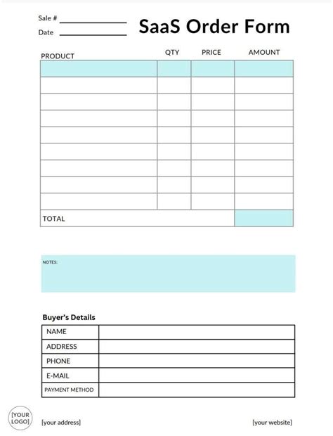 Sales Order Form Template for B2B SaaS Companies Growth Business