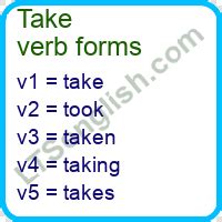 Take Verb Forms In English Take Verb Forms V1 V2 V3