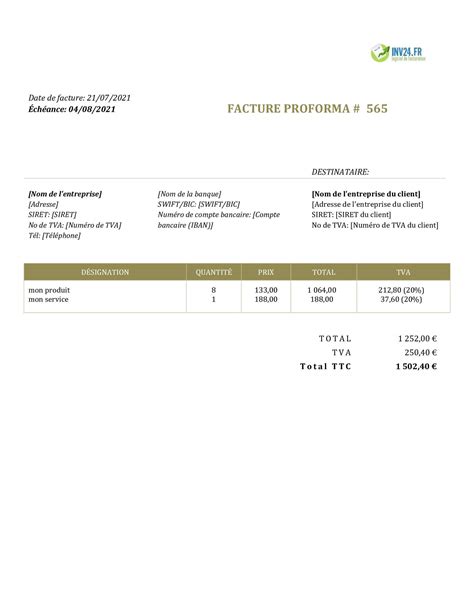 Modèle Facture Proforma Gratuit