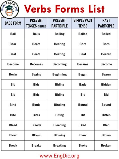 Verbs And Forms List. Web 8 rows main verbs have three basic forms: Web this list contains all the irregular verbs of the english language.