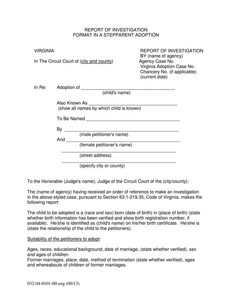 Virginia Stepparent Adoption Forms. Adoption of child by spouse of birth or adoptive parent or other.