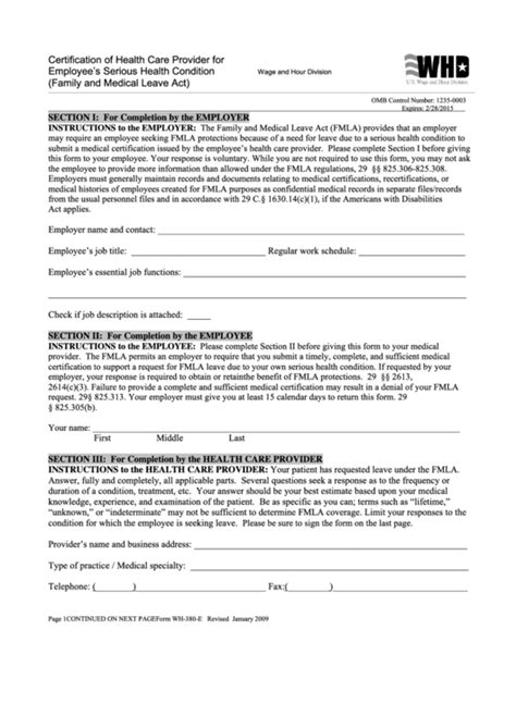 Wh-380-E Form. Fmla certification of health care provider for employee’s serious health condition. Certification of health care provider (pdf) certification of health care provider for employee’s serious health.