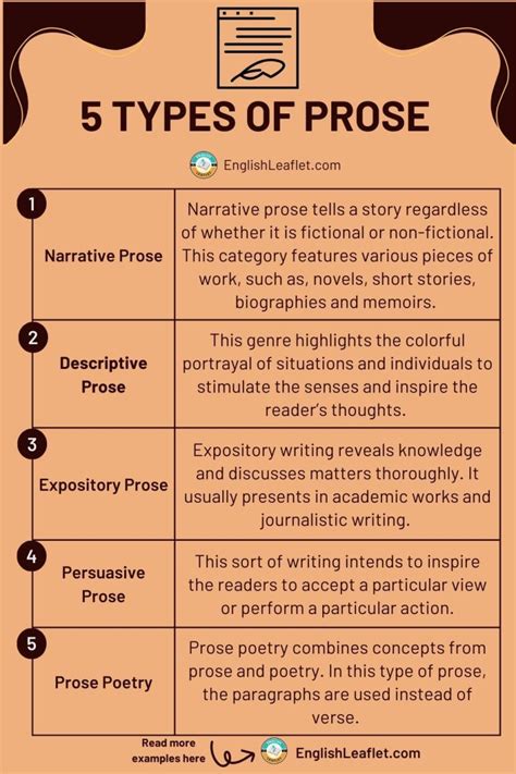 A piece of writing based on fact. The origins of the word can be traced to the. There are four defined types of. Web there are a variety of different types of prose. Web elements of prose; Web in writing, prose is a style used that does not follow a structure of rhyming or meter. Web types of prose are: Web 4 types of prose as we mentioned earlier, prose includes both fictional and nonfictional writing. Web while prose can be broadly defined as straightforward writing that resembles everyday spoken word, there are.
